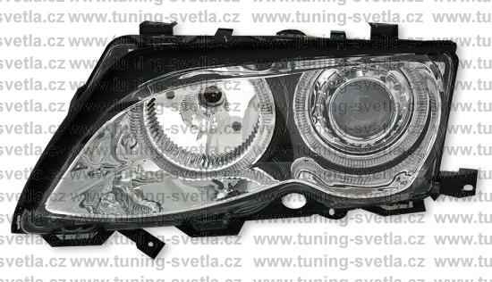 Popis: BMW E46 Facelift (10/01 - 3/05) přední světla Angel Eyes v chromovém provedení. Patice pro žárovky H7+H7. El. nastavitelná pomocí motorků,které jsou součástí světla. Cena za pár. Pro modely : Limousine + Touring.