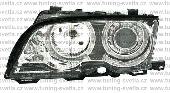Popis: BMW E46 (10/01 - 4/03) přední světla Angel Eyes v chromovém provedení. Patice pro žárovky H7+H7. El. nastavitelná pomocí motorků z originálních světel. Cena za pár. Pro modely : Coupe + Cabrio.