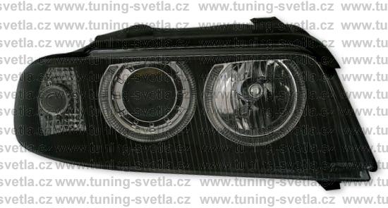 Popis: Audi A4 -facelift- (2/99 - 2/01) přední světla Angel Eyes v černém provedení. Patice pro žárovky H7+H7. El. nastavitelná pomocí motorků z originálních světel. Cena za pár.