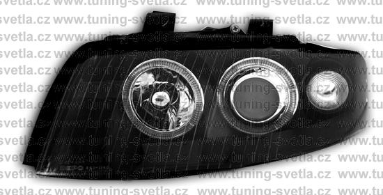 Popis: Audi A4 přední světla Angel Eyes v černém provedení. Patice pro žárovky H7+H7. El. nastavitelná pomocí motorků z originálních světel. Cena za pár.
