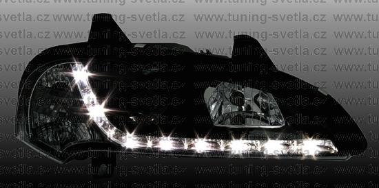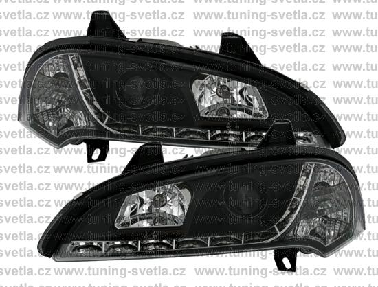 Popis: Opel Tigra (10/94 - 9/00) přední světla s denním svícením v černém provedení. Patice pro žárovky H1+H1. El. nastavitelná pomocí motorků z originálních světel. Cena za pár.