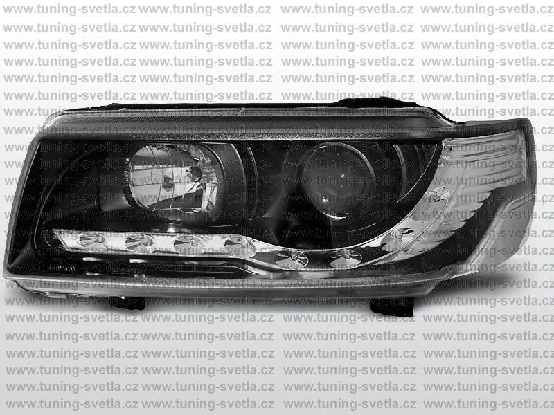 Popis: VW Passat B4 (11/93-10/96) přední světla s denním svícením. Provedení černé. Patice na žárovky H1+ H1. El. nastavitelná pomocí motorků z originálních světel. Cena za sadu