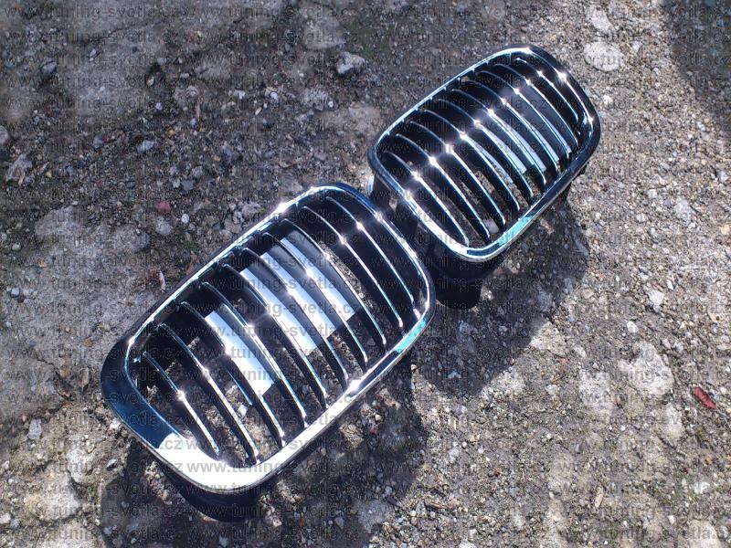 Popis: BMW E46 98-01 Sedan/Touring nová přední chrom maska. Cena je za oba dva kusy masky (levá i pravá strana).