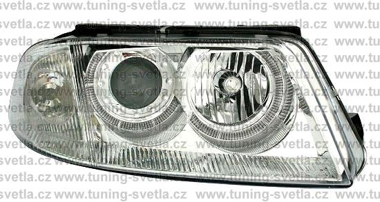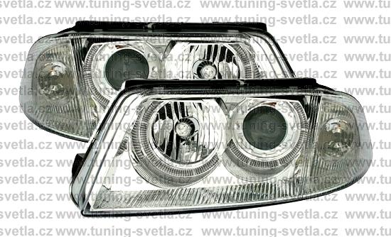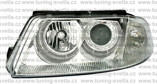 Popis: VW Passat 3BG (2001-2005) přední Angel Eyes světla v chromovém provedení. Patice na žárovky H7+H7. El. nastavitelná pomocí motorků z originálních světel. Cena za sadu.