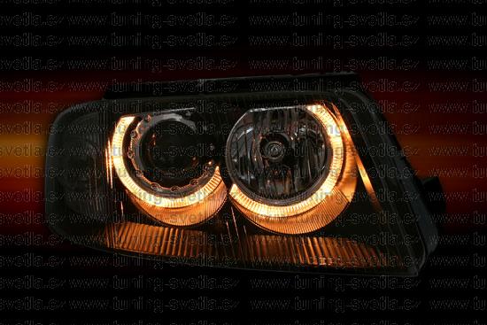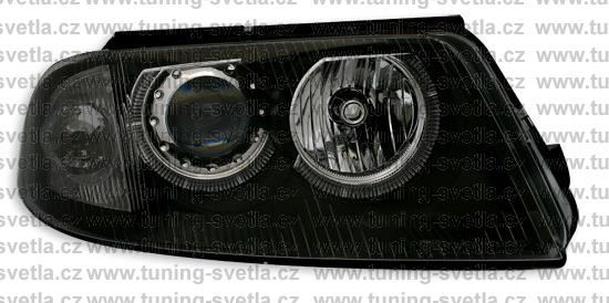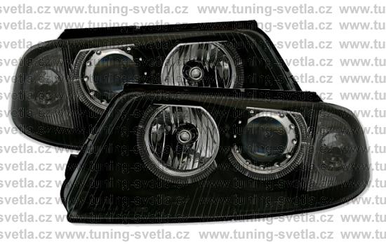 Popis: VW Passat 3BG (2001-2005) přední Angel Eyes světla v černém provedení. Patice na žárovky H7+H7. El. nastavitelná pomocí motorků z originálních světel. Cena za sadu.
