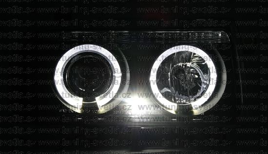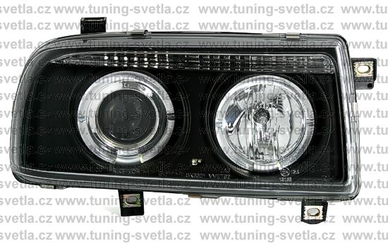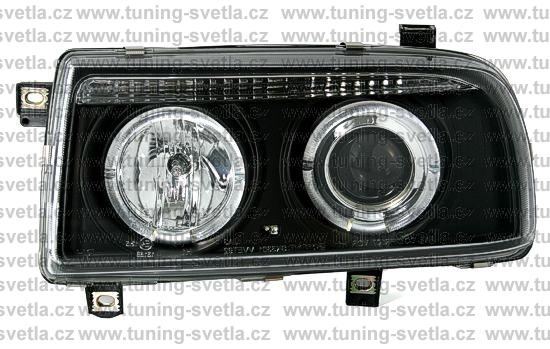 Popis: VW Vento (11/91-9/98) přední Angel Eyes světla v černém provedení. Patice na žárovky H1+H1. El. nastavitelná pomocí motorků z originálních světel. Cena za sadu.