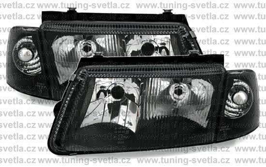 Popis: Vw Passat B5 (1996-2000) nová přední černá světla + přední černé blinkry. Patice na žárovky H1+H7. El. nastavitelná pomocí motorků z originálních světel. Cena za sadu.