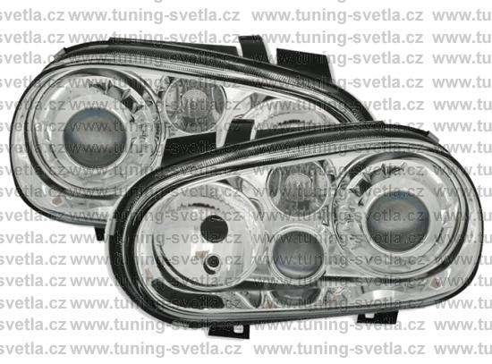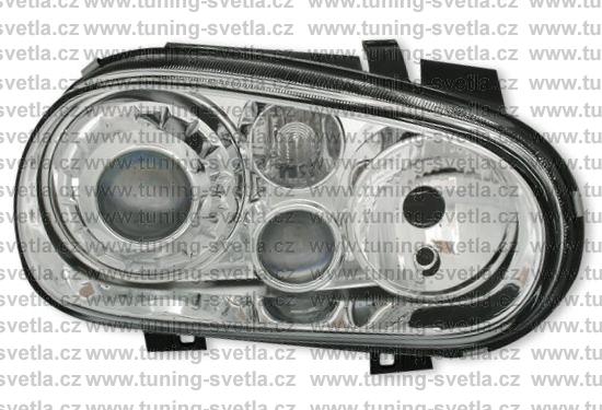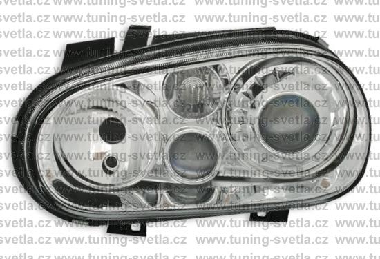 Popis: VW Golf 4 přední světla v chromovém provedení. Patice pro žárovky H7+ H7 + H3. Cena za pár.