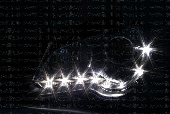 Popis: VW Touran (11/06 - 7/10) přední světla Dayline v černém provedení. Žárovky H7/PY21W. El.nastavitelná-motorky jsou už ve světlech. Led svícení místo parkovacího světla. Cena za pár.