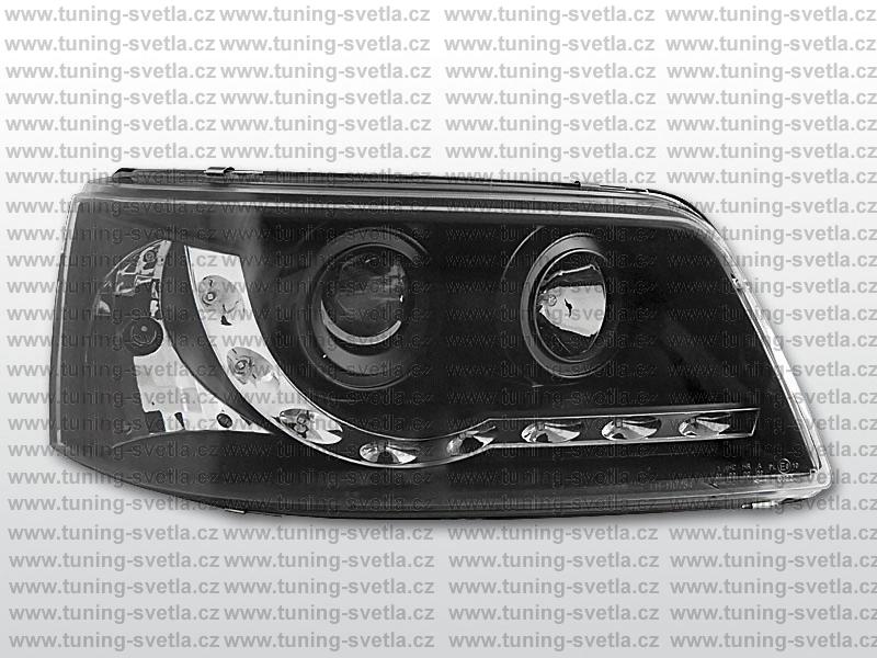 Popis: VW T5 (4/03-4/09) přední světla Dayline v provedení black. Led svícení místo parkovacího světla. Žárovky H1+H1. Cena za pár.