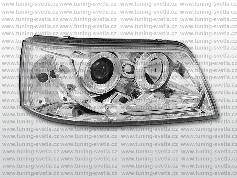 Popis: VW T5 (4/03-4/09) přední světla Dayline v provedení chrom. Led svícení místo parkovacího světla. Žárovky H1+H1. Cena za pár.