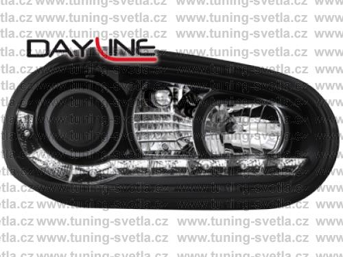 Popis: VW Golf 4 přední světla s denním svícením v černém provedení. Patice pro žárovky H1+ H1. Cena za pár.