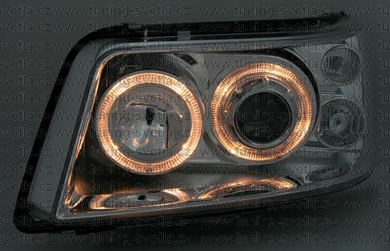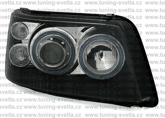 Popis: VW T5 (4/03-8/09) přední Angel Eyes světla v černém provedení. Patice pro žárovky H7+ H1. Cena za pár.