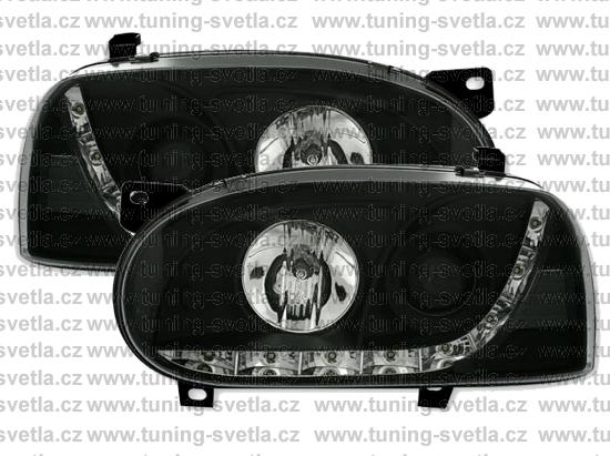 Popis: VW Golf III (1992-1997) přední DayLine světla v černém provedení. Led svícení místo parkovacího světla. Žárovky H1+ H1. Cena za pár.