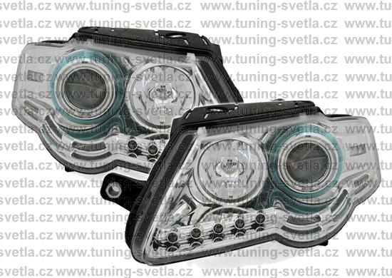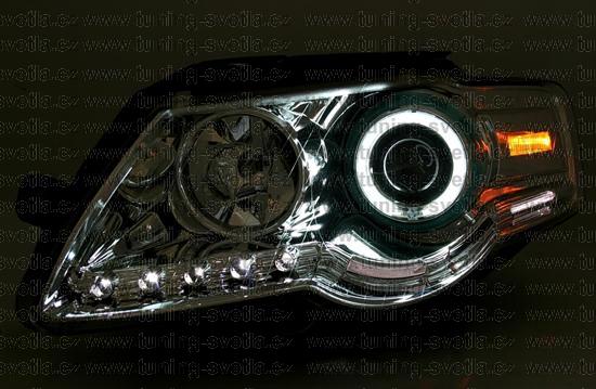 Popis: VW Passat B6 (3/05 - ) přední angel eyes světla CCFL. Provedení chrom. Patice na žárovky H7+H7. El. nastavitelná pomocí motorků z originálních světel. Cena za sadu.