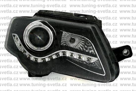 Popis: VW Passat B6 (3/05-) přední Day Line světla s Angel Eyes. Provedení černé. Patice na žárovky H9. El. nastavitelná pomocí motorků,které jsou součastí světla. LED svícení místo parkovacího světla. Cena za sadu.