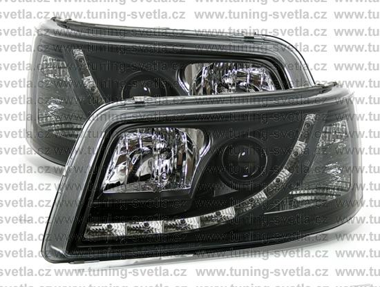 Popis: VW T5 (4/03-4/09) přední světla Dayline v provedení black. Led svícení místo parkovacího světla. Žárovky H1+H1. Cena za pár.