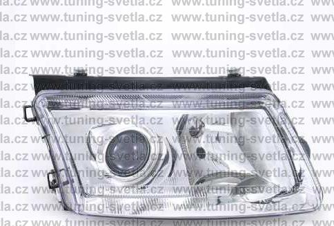 Popis: VW Passat B5 (1996-2000) přední světlo s čočkou. Patice pro vybojku D2S. El. nastavitelná pomocí motorků z originálních světel.