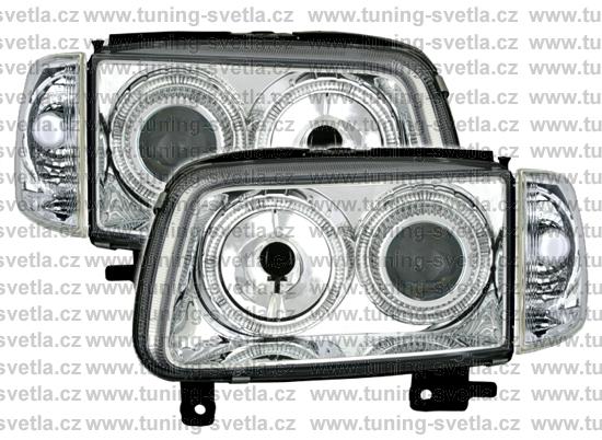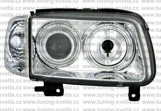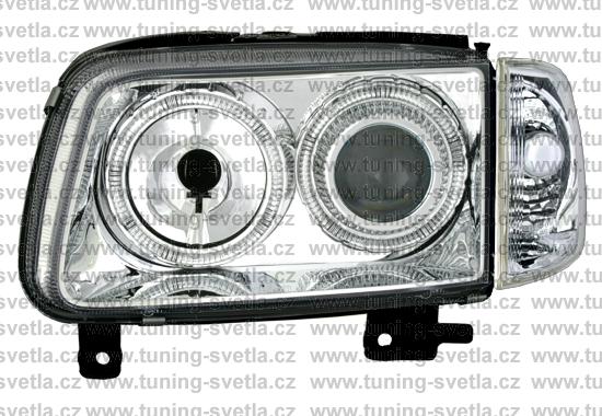 Popis: VW Polo (9/99 - 7/01) přední světla Angel Eyes v chromovém provedení + přední blikače. Patice pro žárovky H7+ H7. El. nastavitelná pomocí motorků z originálních světel. Cena za pár.