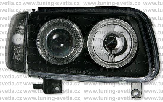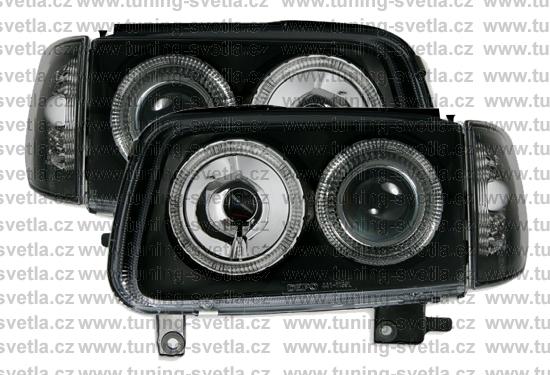Popis: VW Polo (9/99 - 7/01) přední světla Angel Eyes v černém provedení + přední blikače. Patice pro žárovky H7+ H7. El. nastavitelná pomocí motorků z originálních světel. Cena za pár.