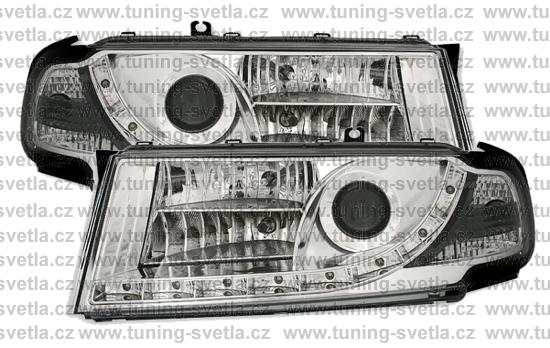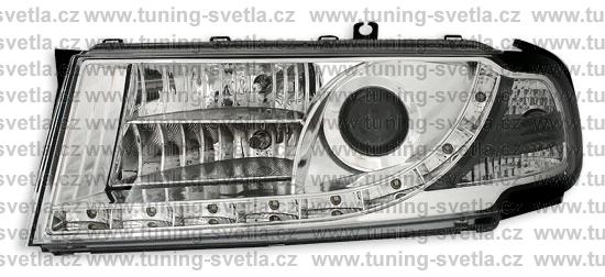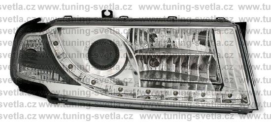 Popis: Škoda Octavia (9/00 - 6/04) přední světla s denním svícením v chromovém provedení. Patice pro žárovky H1+ H1+H7. El. nastavitelná pomocí motorků z originálních světel. Žárovky jsou v sadě přibaleny. Cena za pár.