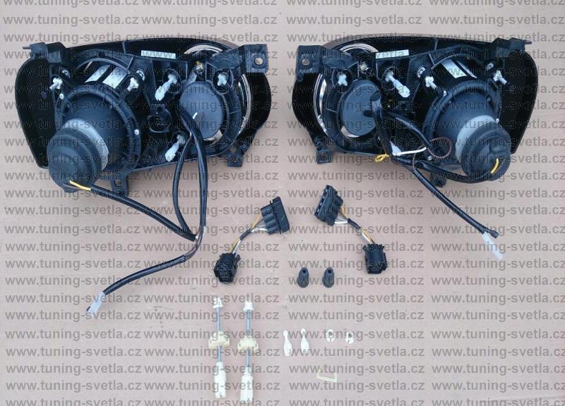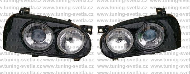 Popis: VW Golf 3 (1991-1998) nová přední světla typ: Projektor v černém provedení. Patice pro žárovky H1+H3. El.nastavitelná pomocí El.motorků z originálních světel. Cena za pár.