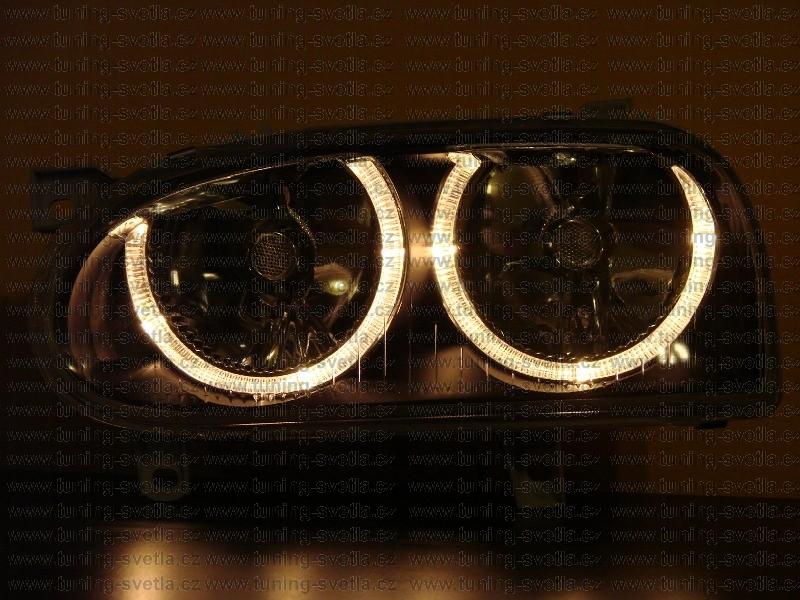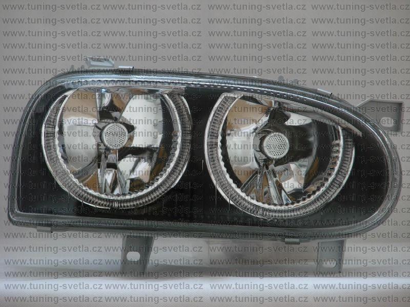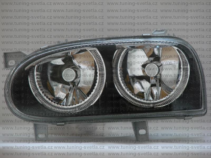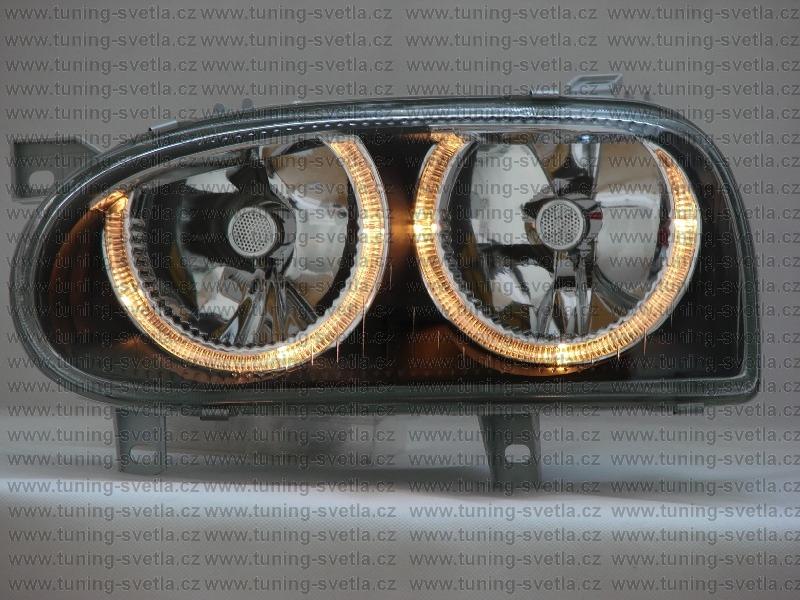 Popis: Vw Golf 3 (1991-1998) přední Angel Eyes světla v černém provedení. Patice pro žárovky H7+H7. Výrobce DEPO. Cena za pár.