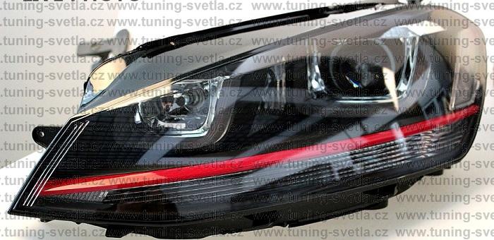 VW GOLF 7 - Přední světla U-TYPE TRU DRL GTI LOOK RED LINE.