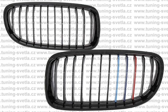 Popis: BMW E90 (2008-2011) přední maska v černém provedení. Cena za pár. Levá strana má 3 barevné proužky.