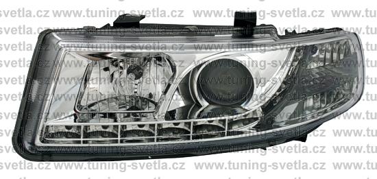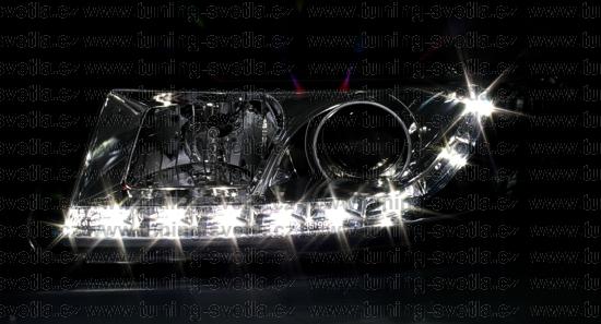 Popis: Seat Leon (12/99 - 10/05) přední světla Day Line v chromovém provedení. LED svícení místo parkovacího světla. Patice pro žárovky H1+ H1. El. nastavitelná pomocí motorků z originálních světel. Žárovky jsou v sadě přibaleny. Cena za pár.