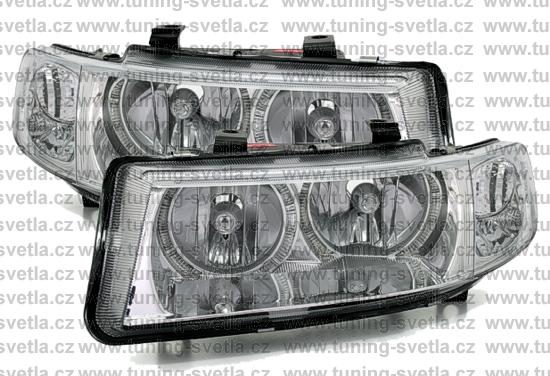 Popis: Seat Toledo (4/99 - 7/04) přední světla Angel Eyes v chromovém provedení. Patice pro žárovky H7+ H7. El. nastavitelná pomocí motorků z originálních světel. Cena za pár.