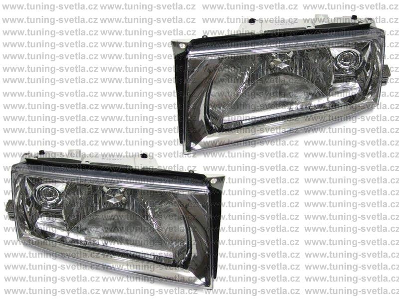 Popis: Škoda Octavia facelift (01/2001 - 11/2010) přední světla v chrom provedení. Verze bez mlhovky. Patice pro žárovku H4. Příprava pro el.naklápění. Provedení bez el.motorku. Cena za pár.
