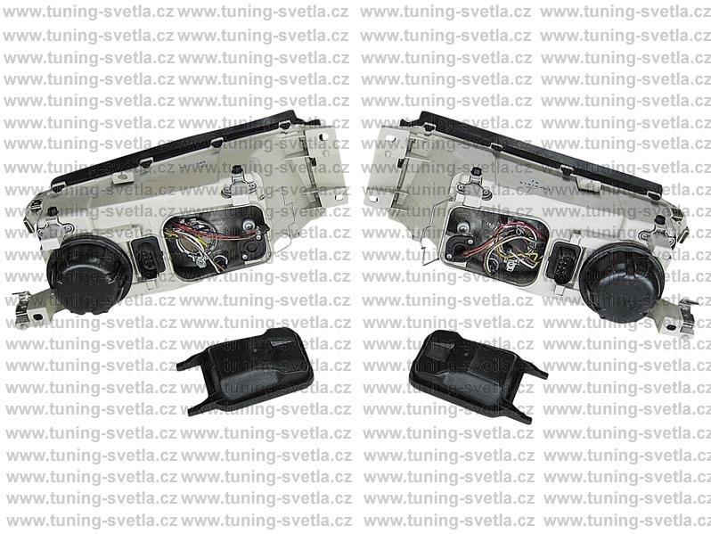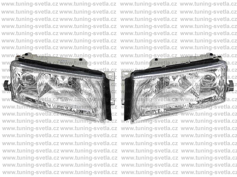 Popis: Škoda Octavia facelift (01/2001 - 11/2010) přední světla v chrom provedení. Verze s mlhovkou. Patice pro žárovku H3+ H4. Příprava pro el.naklápění. Provedení bez el.motorku. Cena za pár.